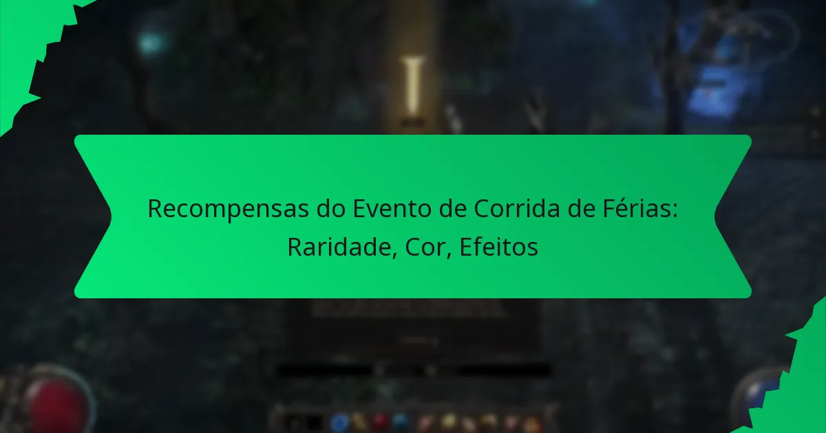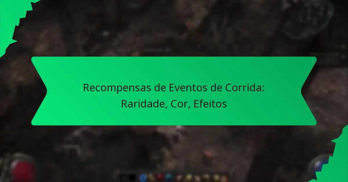 As principais recompensas dos eventos de corrida podem ser categorizadas com base na sua raridade e efeitos. Comumente, as recompensas são classificadas em níveis como comum, rara, épica e lendária, sendo os itens lendários os mais cobiçados devido às suas características únicas e designs visuais.